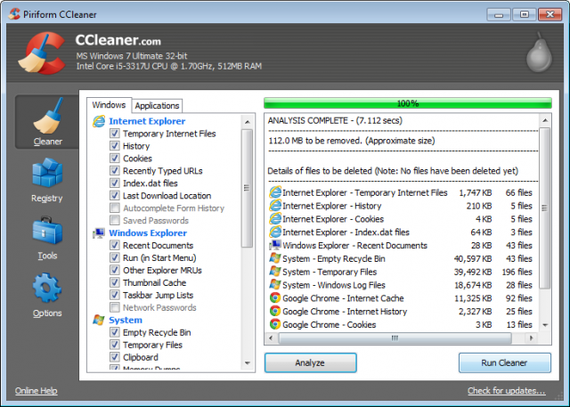 CCleaner là một ứng dụng tuyệt vời. Nó sẽ giúp bạn tìm và xóa bộ nhớ cache cũng như các file tạm thời trong nhiều ứng dụng.