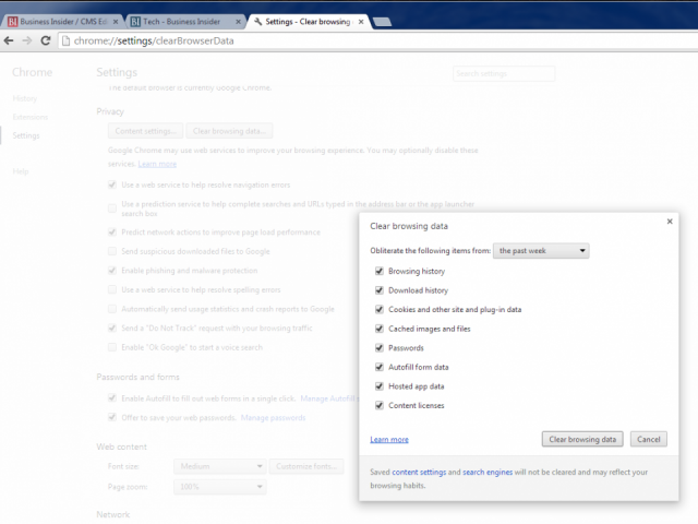 Việc xóa bộ nhớ cache hơi khác cho mỗi trình duyệt, nhưng nói chung bạn phải truy cập đến menu Settings, và tùy chọn History để xóa bộ nhớ cache.