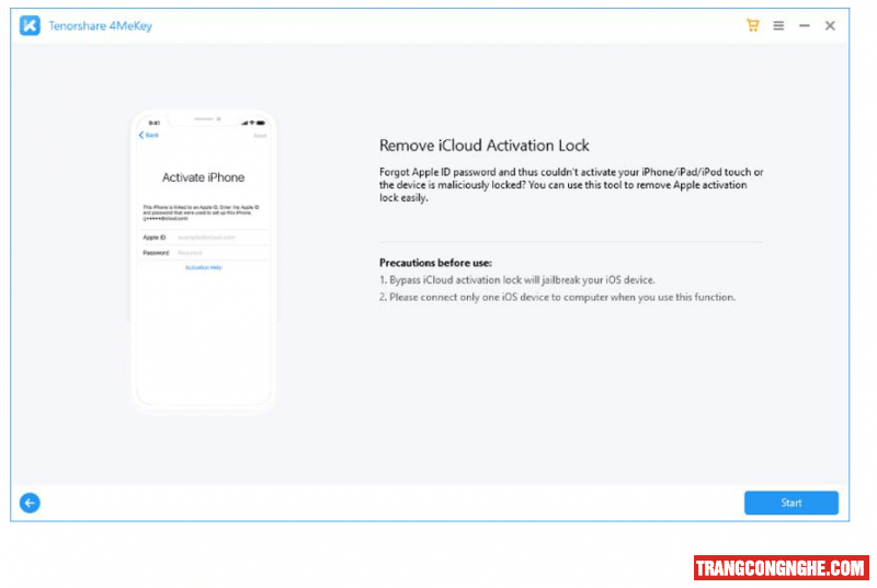 Cách 1: Vô hiệu hóa Activation Lock không cần ID cũ với 4MeKey (Mất phí nhưng hiệu quả nhất)