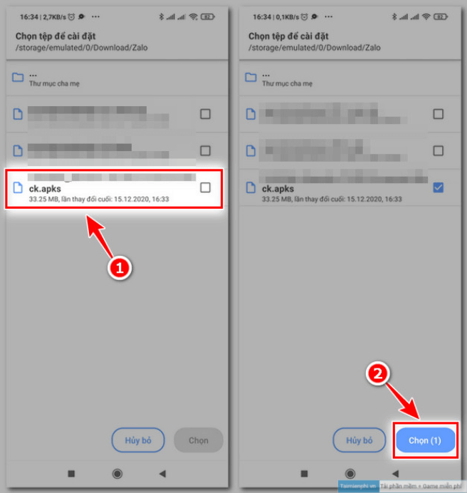 - Chọn file APKs bạn cần phải cài đặt trên điện thoại Android => click Chọn.