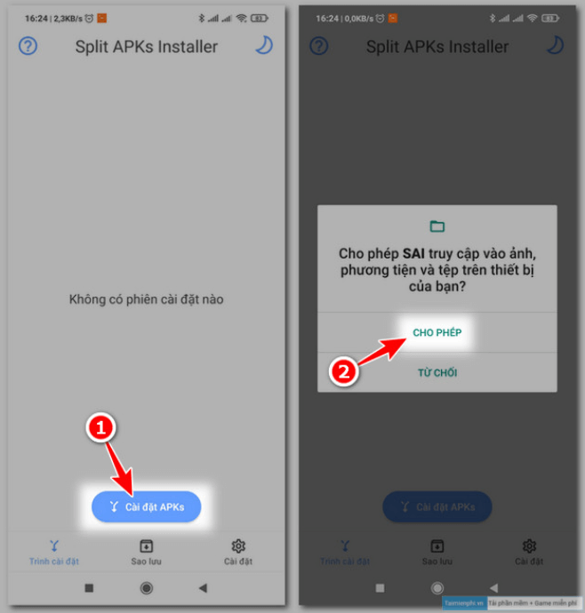 - Bạn mở ứng dụng Split APKs Installer, click Install APPs bên dưới => cho phép SAl truy cập vào ảnh, phương tiện và các tệp trên thiết bị điện thoại của bạn.