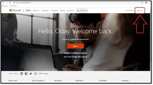 Nhập trang web Office vào thanh địa chỉ và nhấp vào đăng nhập.
