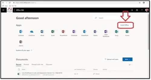 Bước 4: Giao diện Office 365 hiện ra, Click vào [Cài đặt Office]. Nếu bạn có phiên bản Microsoft Office cũ hơn trên máy tính của bạn, vui lòng gỡ cài đặt trước khi cài đặt phiên bản mới.