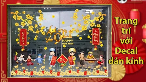 Trang trí cửa văn phòng ngày Tết với Decal dán kính