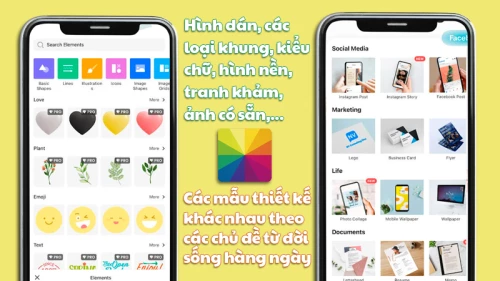 Các mẫu thiết kế khác nhau theo các chủ đề từ đời sống hàng ngày. Được phép chỉnh sửa văn bản, các mẫu thiết kế, v.v mới nhất.
