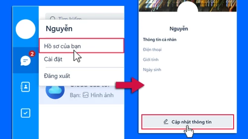 Bước 1: Bạn lựa chọn ảnh đại diện phía bên trái màn hình.