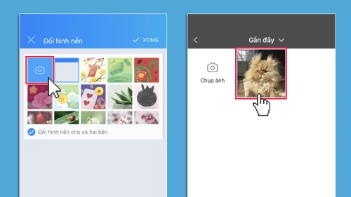 Bước 3: Click vào “ đổi hình nền” và chạm vào hình máy ảnh đầu tiên trên giao diện.