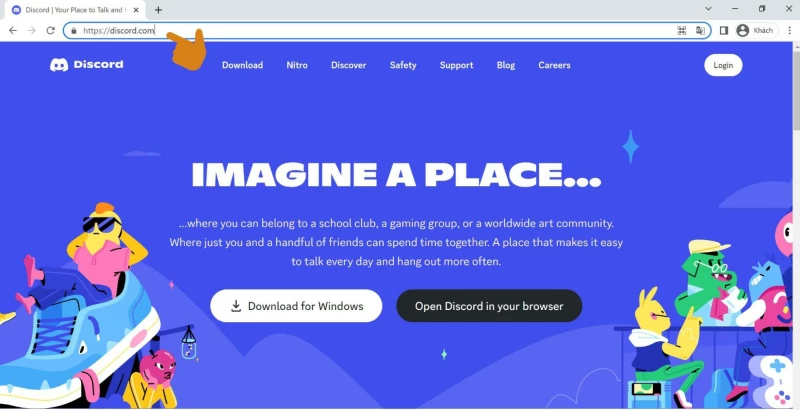 Bước 1: Mở trình duyệt web của bạn và truy cập trang https://discord.com/.