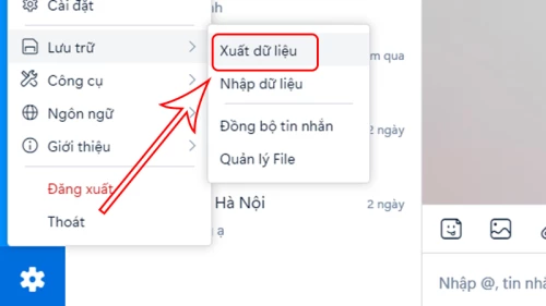 Bước 3: Click “ lưu trữ” => “ xuất dữ liệu”.
