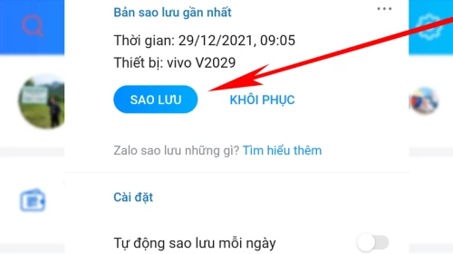Gạt chấm tròn sang bên phải nếu bạn muốn tự động sao lưu tin nhắn Zalo mỗi ngày.