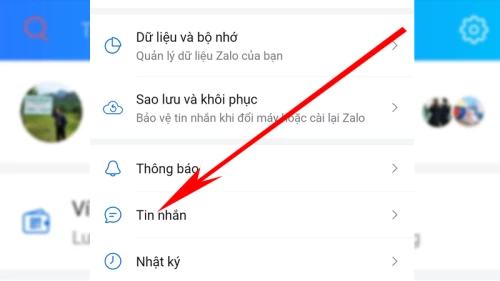 Bước 3: Kéo xuống chọn “ tin nhắn”.