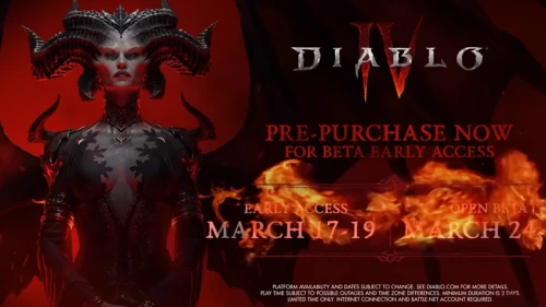 Giai đoạn thử nghiệm đầu tiên Diablo 4 được lên kế hoạch vào ngày 17-19 tháng 3. Đây là bản thử nghiệm được phép 'truy cập sớm', do đó, nó chỉ dành cho những người đã đặt hàng trước cho trò chơi. Giai đoạn thứ hai là vào ngày 24 - 26 tháng 3. Tất cả mọi người, bao gồm cả đơn đặt hàng trước đó, đều được hoan nghênh tham gia vào cuộc thử nghiệm phiên bản Beta này. Do đó, nó cũng đóng vai trò như một lợi ích nhỏ cho những người tin rằng Blizzard sẽ tạo ra một trò chơi vững mạnh. Người chơi sẽ được tận hưởng thêm nhiều giờ trong một lãnh địa nhỏ nhưng phong phú của Sanctuary.