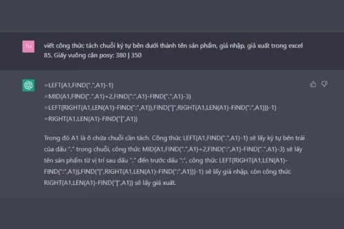 Đối với những hàm tính khó trong Excel mà bạn không thể thực hiện được, bạn có thể sử dụng Chat GPT. Nó giúp việc học và thực hành Excel trở nên hiệu quả, nhanh chóng hơn rất nhiều. Bạn chỉ việc nhập yêu cầu và chờ đợi hướng dẫn từ phía chatbot của OpenAI.