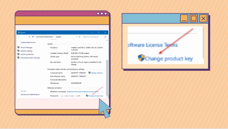 Bước 2: Tại mục Windows Activation => chọn Change product key => Chọn Yes nếu xuất hiện cửa sổ User Account Control.