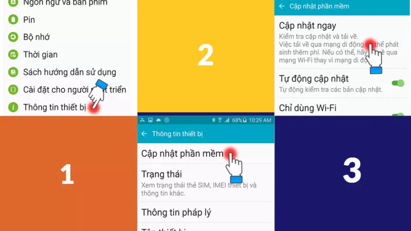 Để cập nhập bạn cần “Mở cài đặt” > Chuyển đến “Menu Hệ thống” > “Nâng cao” > “Cập nhật hệ thống”. Kiểm tra các bản cập nhật mới và nếu có, hãy cài đặt chúng ngay. Trong các thiết bị mới nhất, bạn sẽ tìm thấy phần “Cập nhật Hệ thống” trong mục “Giới thiệu”.