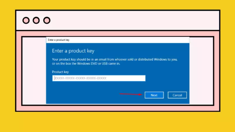 Bước 4: Xuất hiện ô “Enter a product key” bạn cần phải copy từng key xem key nào phù hợp trong danh sách key win 10 ở phía trên > Chọn “Next” để tiếp tục.