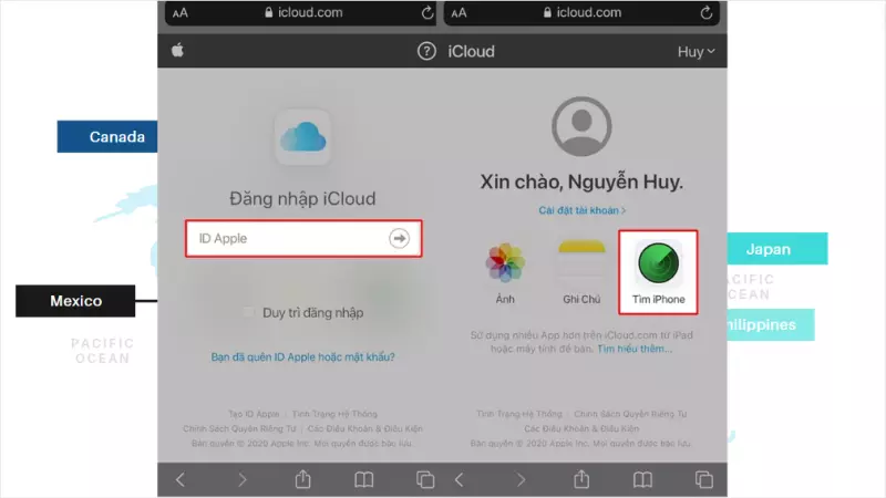 Bước 1: Bạn truy cập vào iCloud trên trang web bằng tài khoản bạn đang đăng nhập trên iphone bị mất.