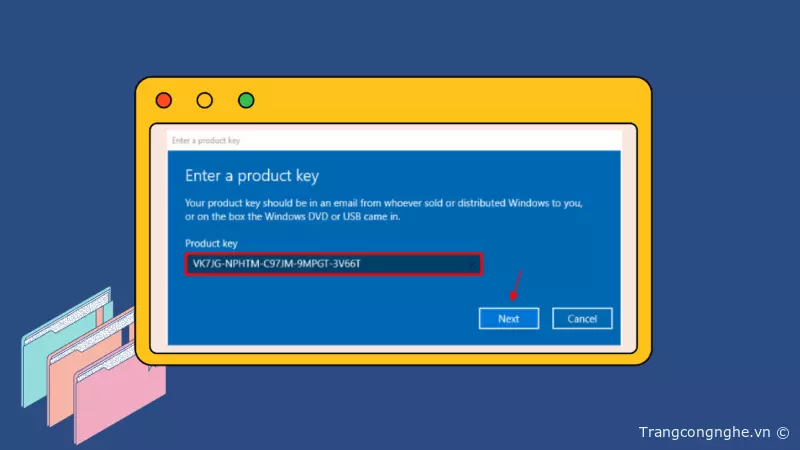 Bước 2: Xuất hiện hộp thoại “Enter a product key” bạn nhập product key > Chọn “Next” để đổi product key.
