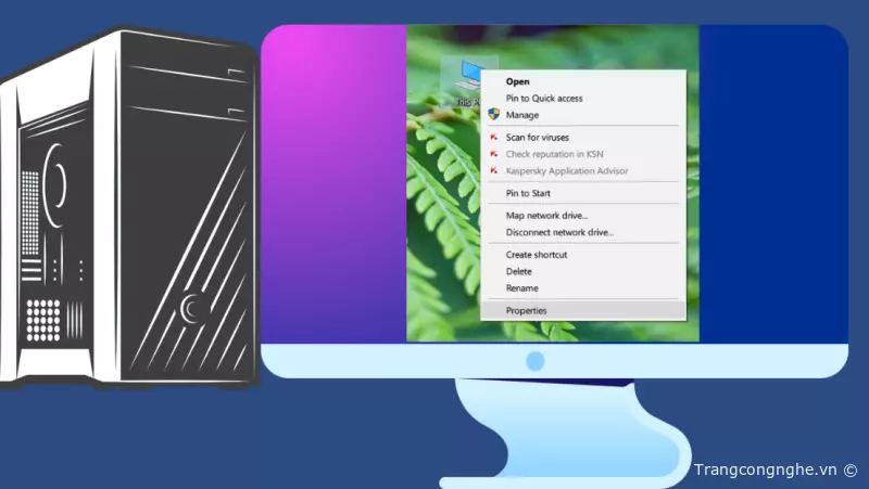 Lưu ý: Nếu biểu tượng This PC không hiển thị trên màn hình Desktop của bạn, bạn có thể kích chuột phải vào biểu tượng “This PC” ở khung bên trái, và sau đó chọn “System Properties”.