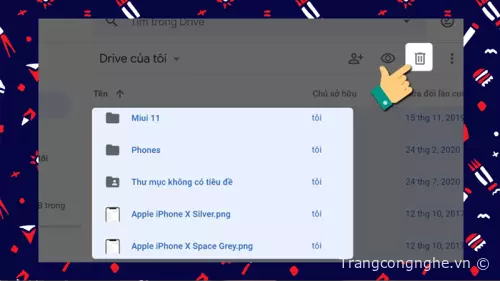 3. Click vào biểu tượng thùng rác ở góc trên bên phải màn hình.