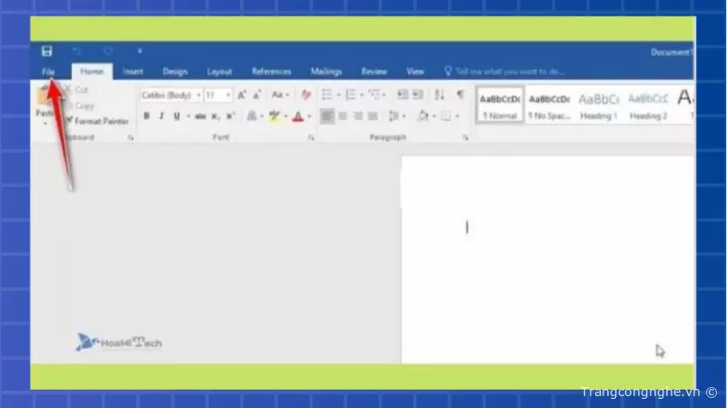 Bước 1: Mở phần mềm Word 2016 và chọn Tab File.