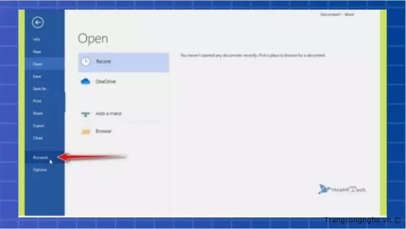 Bước 2: Chọn Account trong Word 2016.