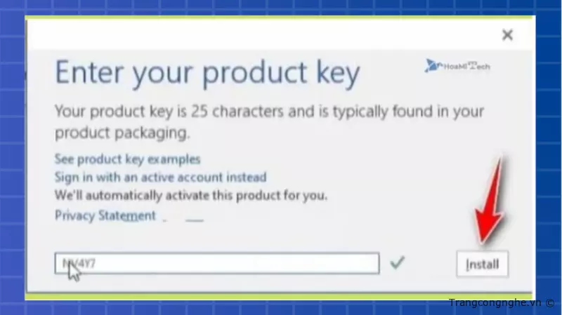 Bước 4: Copy một trong các Key được chia sẻ ở trên và điền vào ô, sau đó nhấn Install. Nếu thông báo không thành công xuất hiện, hãy thử sử dụng một Key khác.