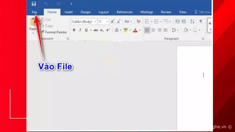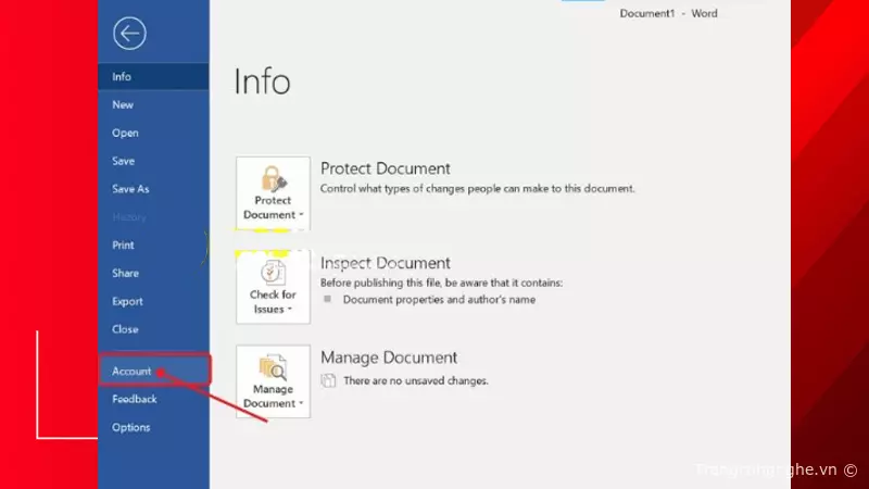 Bước 2: Sau khi mở ứng dụng Office 2016, hãy chọn “File” ở góc trái phía trên cùng của màn hình. Trong danh sách các tùy chọn xuất hiện, hãy chọn “Account”.