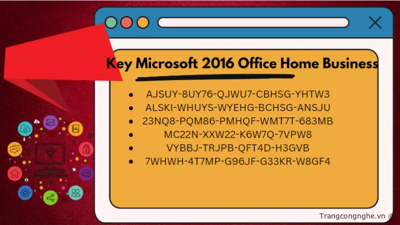 Để sử dụng được Office 2016 trên máy tính của mình, bạn cần tải về và cài đặt phiên bản này. Tuy nhiên, việc kích hoạt sử dụng bản quyền của Office 2016 lại là một thách thức đối với nhiều người dùng. Vì vậy, rất nhiều người đã quan tâm tìm kiếm cách kích hoạt bằng key active office 2016 vĩnh viễn Free. Trong bài viết này, sẽ chia sẻ cho bạn một số key kích hoạt Office 2016 bản quyền miễn phí. Ngoài ra, trangcongnghe.vn sẽ hướng dẫn bạn cách kích hoạt Office 2016 bằng Key đơn giản và hiệu quả hơn. Bạn có thể áp dụng những key này để sử dụng Office 2016 một cách dễ dàng và tiện lợi hơn. Hãy theo dõi ngay bài viết này của chúng tôi để có thêm thông tin chi tiết nhé!