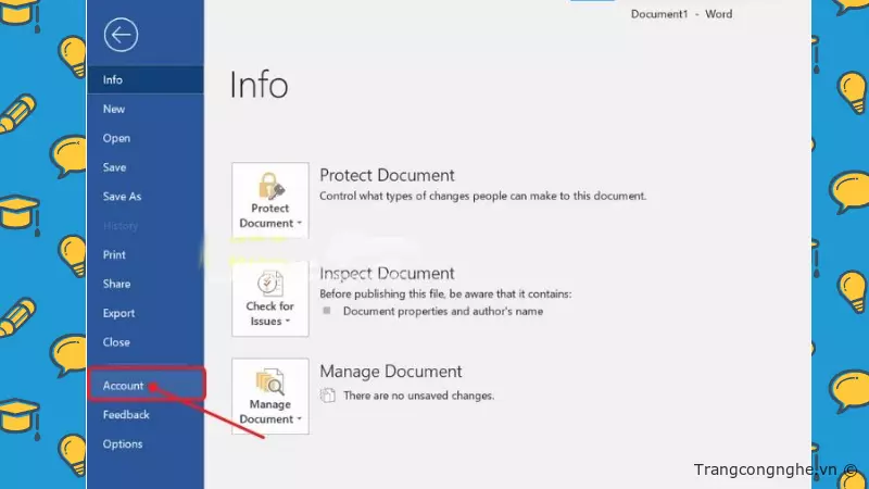 Bước 2: Vào mục File trong phần Menu → Chọn Account