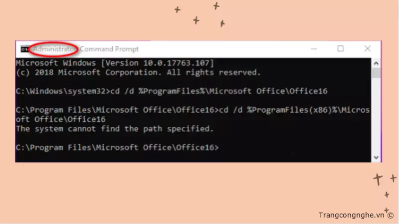 Lệnh 1: cd /d %ProgramFiles%\Microsoft Office\Office16