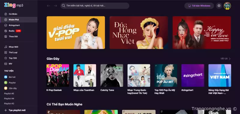 Bước 1: Truy cập vào trang web Zing MP3 tại https://zingmp3.vn/