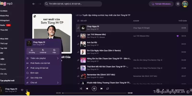 Bước 2: Tìm kiếm bài hát hoặc ca sĩ mà bạn muốn tải.