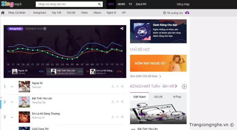 Đây là một trong những trang web nghe nhạc trực tuyến hàng đầu tại Việt Nam. Người dùng có thể tìm kiếm bài hát, album, playlist và thưởng thức hàng triệu bài hát miễn phí.