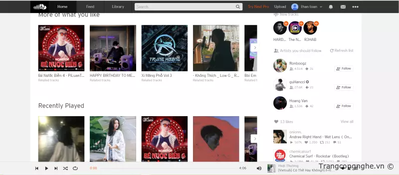 SoundCloud là một trang web cho phép người dùng nghe và chia sẻ âm nhạc của họ miễn phí. Trang web này cũng cung cấp các bài hát, album và playlist miễn phí.