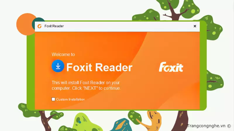 Bước 2: Ở cửa sổ Welcome to the Foxit Reader Setup Wizard, bạn hãy nhấp vào Custom Installation để tùy chỉnh cài đặt. Nếu không cần chỉnh sửa gì tiếp tục nhấn Continue.