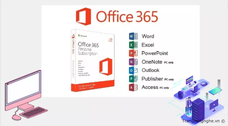 Office 365 là một phần mềm bao gồm các ứng dụng văn phòng của Microsoft bao gồm: