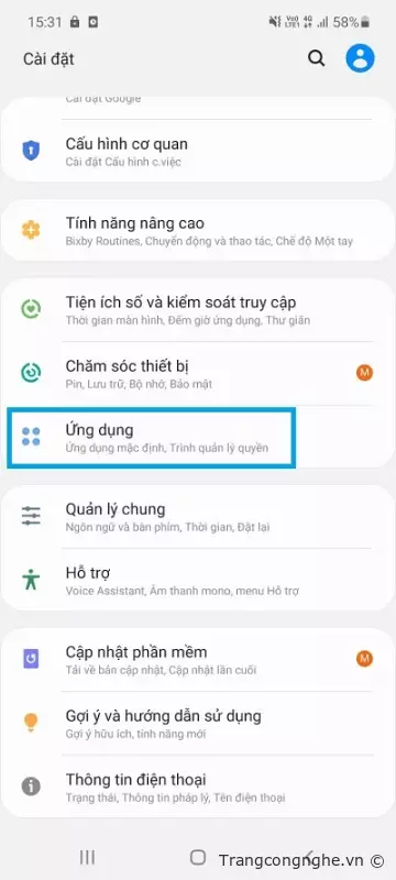 Bước 1: Truy cập Cài đặt > Ứng dụng.![]()