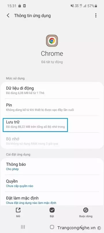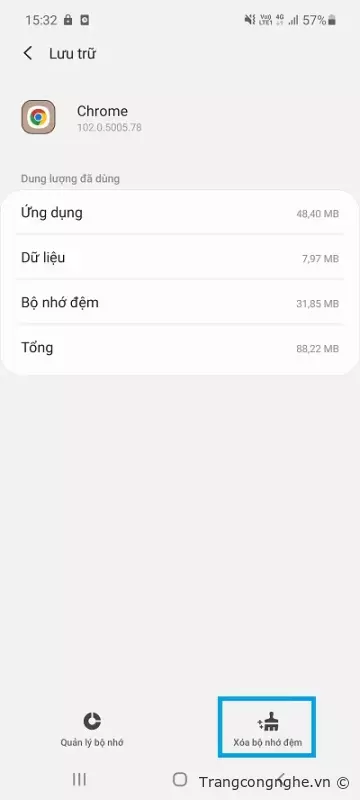 Bước 4: Chọn 'Xóa dữ liệu' hoặc 'Xóa bộ nhớ đệm' để xóa các tập tin tạm thời và dữ liệu bộ nhớ đệm của ứng dụng đó.![]()
