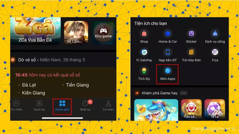 Bước 2: Nhấn vào mục “Khám phá” ở phía dưới màn hình và tìm kiếm “Mini App”.