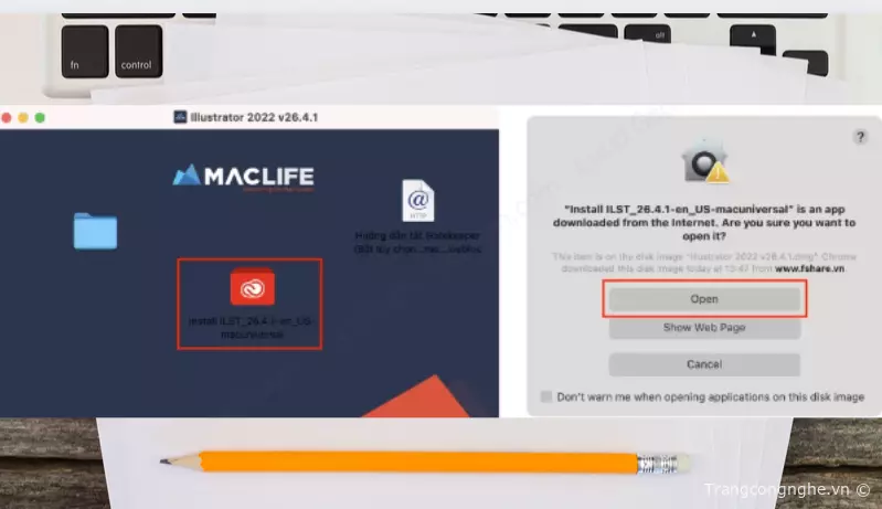 B1: Chọn vào file cài đặt để mở, sau đó nhấn Open khi popup hiện lên.