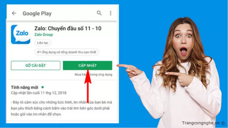 Bên cạnh đó, bạn cũng có thể thử sử dụng cách cập nhật ứng dụng Zalo trên điện thoại. Đôi khi, phiên bản Zalo trên điện thoại của bạn quá lỗi thời và không đáp ứng được các tính năng mới nên sẽ gặp phải tình trạng lỗi bong bóng chat Zalo. Để cập nhật ứng dụng, bạn có thể truy cập CH Play (đối với Android) hoặc App Store (đối với iOS) để tải về phiên bản mới nhất của Zalo.