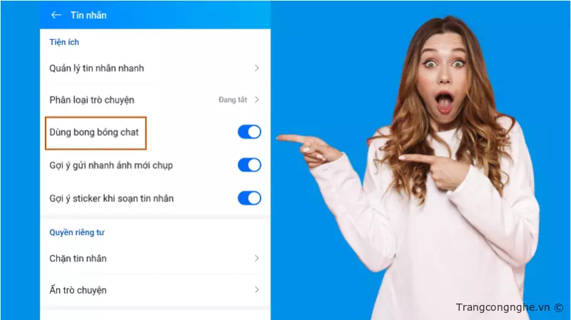 Nếu bạn đang bị lỗi bong bóng chat trên Zalo và không thể sử dụng tính năng yêu thích này thì đừng vội lo lắng. Dưới đây là một số mẹo nhỏ từ Trangcongnghe.vn sẽ giúp bạn có thể khắc phục tình trạng này một cách nhanh chóng.