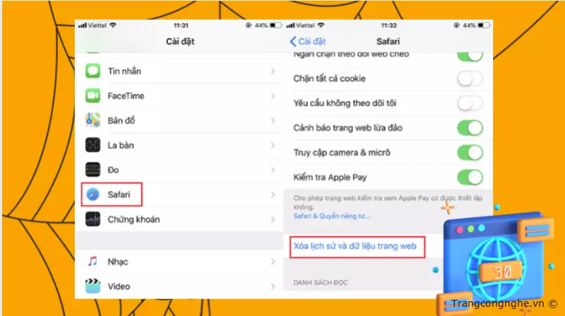3. Xóa lịch sử và dữ liệu truy cập trên Safari