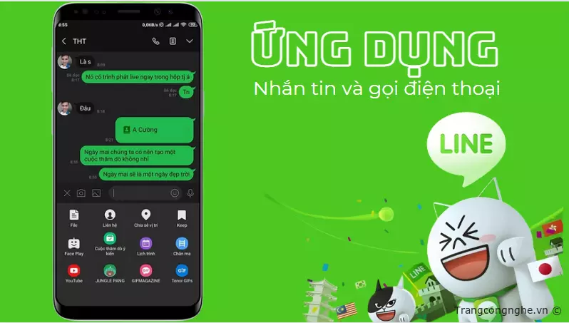 LINE là một ứng dụng nhắn tin và gọi điện thoại miễn phí, được sử dụng rộng rãi tại Việt Nam và một số quốc gia khác. Ngoài việc nhắn tin và gọi điện, LINE còn cung cấp nhiều tính năng hữu ích khác như tạo nhóm chat, chia sẻ tập tin, gửi nhãn dán, tạo trang cá nhân, chơi game trong ứng dụng, và thậm chí cả mua sắm trực tuyến.