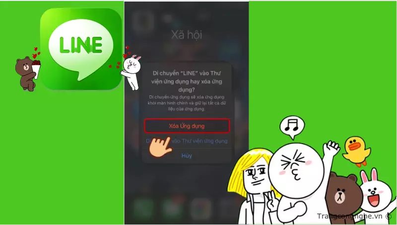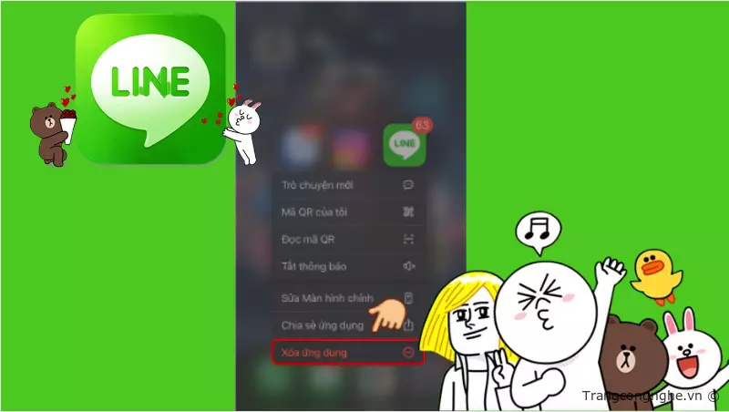 Bước 1: Bạn nhấn và giữ ứng dụng “LINE” > Ấn chọn mục “Xóa ứng dụng”.