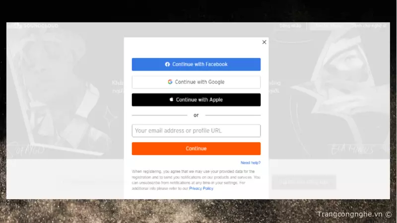 Bước 2: Đăng ký tài khoản SoundCloud nếu bạn chưa có tài khoản.