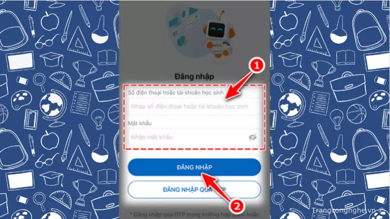 Bước 3: Nhập thông tin tài khoản và mật khẩu hoặc sử dụng mã OTP để đăng nhập.