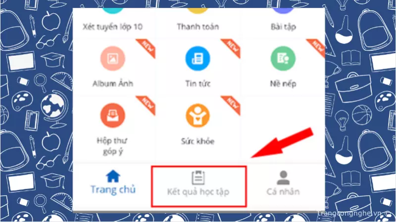 Bước 1: Truy cập vào màn hình chính của ứng dụng hoặc trang web và chọn kết quả học tập.