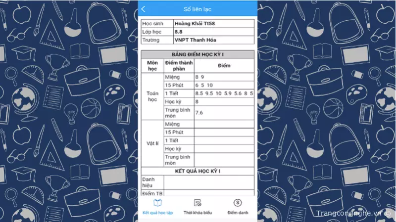 Bước 3: Ứng dụng sẽ hiển thị chi tiết kết quả học tập của học sinh với từng điểm thành phần, giúp phụ huynh hoặc học sinh có thể nhanh chóng và dễ dàng theo dõi quá trình học tập của mình.